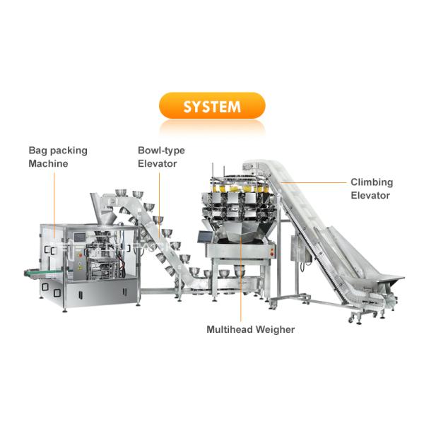 2.Multihead weigher:10/14/20 heads weighing machine for weighing target weight.